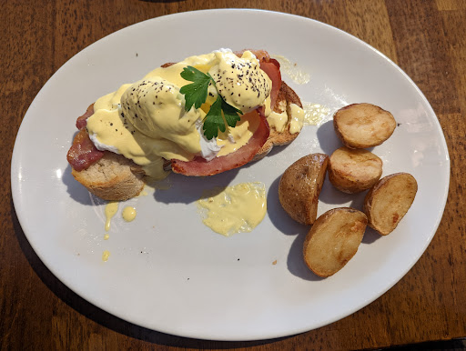 Read moreSort of a mixed experience. I ordered the eggs Benedict. The eggs were overcooked. The hollandaise sauce had way too much lemon in it and lack character. There were 5 potatoes edges in the plate (are you saving money on potatoes?) which made the dish look a little less enthusiastic. Coffee was really, really, but really horrible. Poor coffee machine maintenance or poor quality coffee? Here is a tip, coffee shop MUST at least serve good coffees, don't you agree? On the other hand, the apple pie was one of the best I ever had. Service was nice. Price really adequate. All in all, I might come back and try something else but it is not a place I would recommend right...