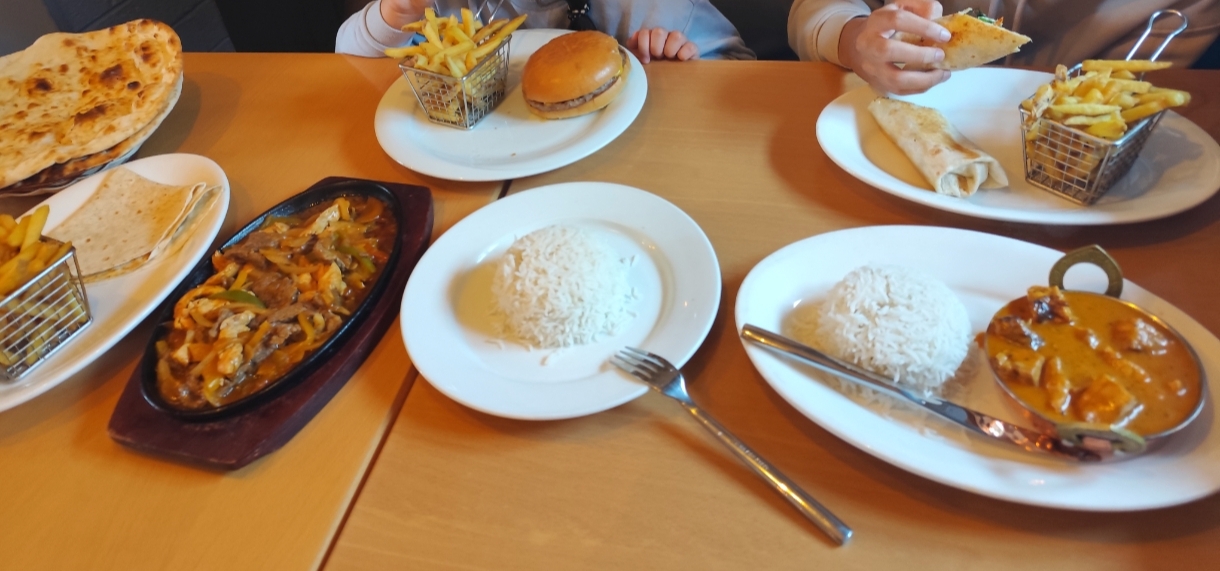 🔴Negatives: Got typical chicken curry (spicy and not sweet or creamy as butter chicken should be) Got 2 plain naan breads instead garlic ones that ordered. Cutlery was given for 1 person of 4 at the table .mix grill not looked like grill at all barely cooked half raw beef and chicken in onion stew, had to ask get it cooked more (was expecting to be more cooked and grilled brown but got only more heated...