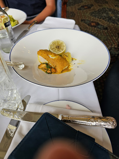 While the atmosphere was impeccable, the overall experience fell short in other areas. The food, unfortunately, was inconsistent. The scallops were overcooked and overwhelmed by a chaotic plate presentation, while the winter salad impressed with its fresh ingredients and creative dressing. The black sole fillet was cooked well but accompanied by two types of potatoes, making it feel less refined, more akin to pub fare than fine dining. Desserts were limited to mousses and soufflés, with no cakes or other creative options, highlighting the need for a skilled pâtissier to add variety and finesse to the menu.