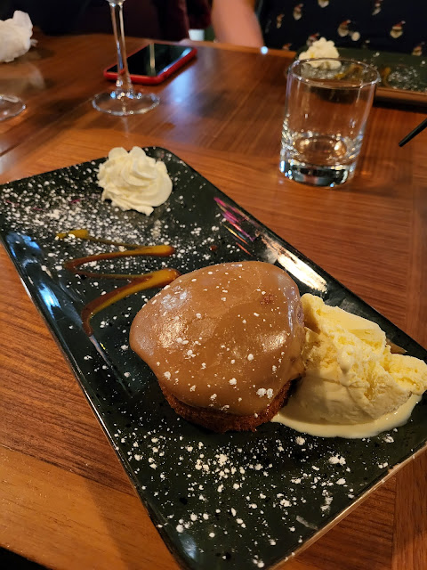 Sticky toffee pudding was terrible. Toffee top wasn't perfectly metled, felt like blob of sugar.