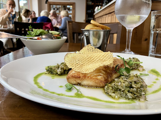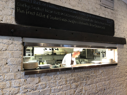 Top-notch nosh in a quaint setting. The food was superb and enticingly presented on the plate. My brie open-faced sandwich had a homemade chutney to die for. The coconut and squash soup was thick, wholesome and flavourful. The wine was a generous pour, and the cappuccino frothy with a dash of cocoa on top. My partner’s ham dish was also generous and the meat tasty and juicy. There were a few choices for vegetarians, and they will certainly leave full and happy. The only downside was the server. She was distracted, unsmiling, and not in the mood to go into much detail about the menu or to help us read the faraway (and difficult to read) blackboard specials, or to offer even a welcoming smile. Because this is such a quaint small-town place with a homely feel and a spot in the Michelin guide, I’m going to assume this was an off day for her, and she’ll soon provide the friendliness and helpfulness that this kind of establishment requires. Let your customers in on the specials rather than directing them to the faintly written words on a board at the other side of the restaurant. Offer a smile and a welcome. You’ve got a great place with good food; be happy about that and make your customers carry that image rather than the aftertaste of a disgruntled worker who doesn’t want to be there at all. Your food is great -...
