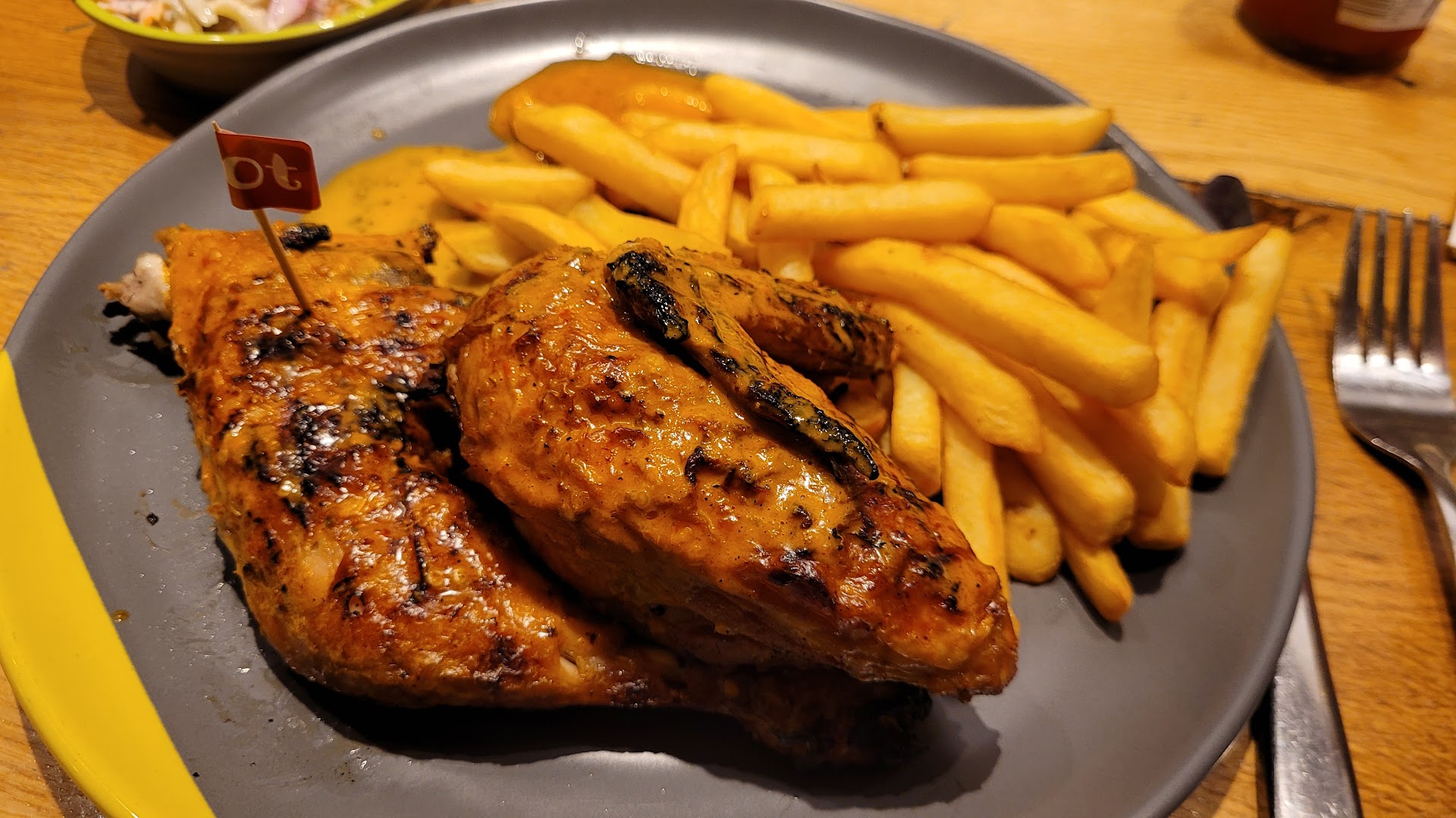 This is a joke we waited 1 hour for food to come that wasn’t even ours. I brought my child here after his communion as he wanted to have a nice meal with his mam and brother , so we decided to come here and go to get ice cream after, anyways they wore rude and had 1 poor girl running around serving the food on her own while the others stood around doing nothing. the staff standing around doing nothing kept staring at me and my child and then laughed at me and my children. I’m not sure why and when i went to ask them why they were laughing they all looked at each other and laughed more at my son and made fun of him for having his tongue out because he has down syndrome, very rude my son started to cry and i was stressed out trying to calm him down. I let most things slide but when it’s about my son with down syndrome I will not have it. They then continued to bully my other son who is mixed race and called him racial slurs. One of them even said “get on the floor and clean it you dirty slave”. Absolutely disgusting!!! They clearly have immature young kids working here that don’t have any special needs kids of their own. DO...