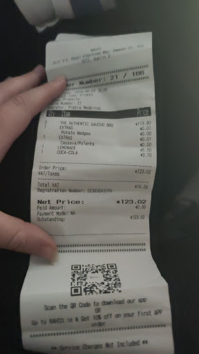 Read moreMy boyfriend brought me here for a date, as a love buffets. Let me tell you this was nothing like a buffet. Firstly when we entered the place, a female worker was sitting on a chair looking at us for about 3 minutes and only then decided to welcome us. She then asked what would we like mentioning two random names or words which we didn't understand, and when we asked her to explain it she mumbled something saying the full experience is option 2 and it's 2 hours, if your really hungry. She then brought us to the table and left us there for few minutes. After awkwardly sitting there she then came over and told us very quietly and unmannerly how it works, (even tho we didn't understand) she then said it's pretty easy almost like she was sick of explaining it to everyone. She then asked us what drinks would we like. They didn't provide us with any menus or information about prices or anything. When we asked what drinks do you have. She quickly ran through all the drinks and just couldn't wait for us to say something. Anyways we ordered our drinks and went to have a look at the salads, salads were bland and cheap looking. The best thing was broccoli and sweetcorn. The rice was plain white rice and the cheese and salami looked like the cheapest one from Lidl. They then brought over the meats, one by one. The meats were chewy, flavourless and dry. The waiters only give you a small piece of each one and then walk away, so your not rly going to be full from it. One of the meats was not edible so I had to spit it out into the napkin. This is definitely not a place you want to go to. We stayed there for about 20 minutes and we had to leave as we were still very hungry and the food was so bad. When we asked for the bill, the waitress after a few minutes came to the table and started speaking a different language to another, and it honestly sounded like they were talking bad about us. We ended up paying €123.02 and we left hungry and sad. The workers seem to hate their job and they need training on customer service. The lemonade that my boyfriend got was €5.50, and he said it was so sour he could barely drink it. My coke was €3.70 and let me tell you they probably found the smallest glass bottle of coke they could find. The extras that they put on the table, like the chips and stuff are 1 cent each but they don't even ask you if you want it they just place it on your table. Also to mention there were like 10 chips on it. So you are forced to pay it anyway, I don't mind paying the one cent but it's just the principle of it. This place is a trap and I don't recommend...