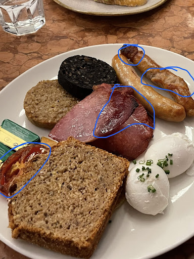 Iâm not sure if it is really âfullâ Irish breakfast when baked beans, mushrooms and hash browns were missing, and fried eggs were replaced by poached ones. You might argue itâs a healthier option. But who would order full Irish breakfast in the first place, if he/she takes healthy eating as a priority? It is perfectly fine if boiled or steamed bacon/sausage were to be introduced in the future for those value good diet over taste, but I think at least the customer should have been given the opportunity to choose fried eggs if he/she prefers the traditional/classic way of Irish cooking. And the rashers of bacon were so dry and hard, and my friends had to send them back to the kitchen. Also the presentation of the dish has some room for improvement, for a premium price of âŹ17.50. The picture says it allâŚ