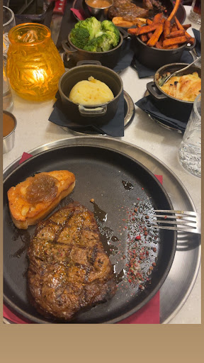 Went on to the mains then I orderd a ribeye Medium , it came well done with a burnt taste absolutely doused in salt and pepper in edible, i had no choice but to send it back so at this stage the 3 sides i had orderd and my pepper sauce are going cold.