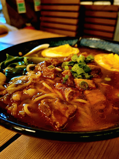 As for atmosphere: not sure if due to weather or hours of the day/choice of day of the week but was good to the point I didn't need to yell to hear each other out what in most cases is in big demanding places like this one. Service: was very fast efficient and welcoming, the staff was very detailed and knowledgeable almost by heart on the menu and knew exactly what to recommend, took a bit longer than expected for the main courses to arrive but it still fast Service nonetheless. Food, as for the boss chicken, felt missing seasoning for the batter that coated the chicken, was not savoury enough, the chicken itself underneath was tender and well made! The pork soup was seasoned well. the noodles were combined perfectly with all the ingredients in the bowl. The side rice should've come with the meal as the price for the gong boa ji ding deserves to come without extra charge for sides. The chicken was tender, and yet the sauce wasn't overpowering the texture. The rice was a bit too bland and not worth the extra cost even. As for plating all dishes aside the gong boa ju ding that should've arrived with rice on top or sided on the same plat and absorbed the flavour then dish would been much better than it was by the serving presentation that it comes now. Will recommend to visit here and come back to try the...