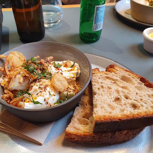 Read moreMy 1st time visiting their new restaurant upstairs. The menu is for brunch type dishes, all very tempting. I had the Eggs & Bread and it was so yummy. MoMo was our server and she was delightful, efficient and attentive without fussing. Her customer services skills are excellent. The restaurant is nicely laid out, mostly tables & chairs along with a couple of booths. The booths are a bit of a tight squeeze if you are on the larger side! Reservations required, book online. They are busy at lunch and the 3pm close time is strictly observed. There is an open spaced cafe downstairs and you can also purchase their fabulous breads.