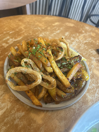 The real disappointment was the calamari small plate. The menu described it as “Calamari, Wild Prawns Spice Bag, Peanut Chili Oil,” which sounded delicious. What I got instead was a plate that was 90% fries, with barely any calamari and no sign of prawns or chili oil. I even asked the server if this was the right dish, and she just repeated the menu description without acknowledging the issue.