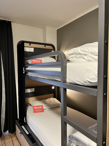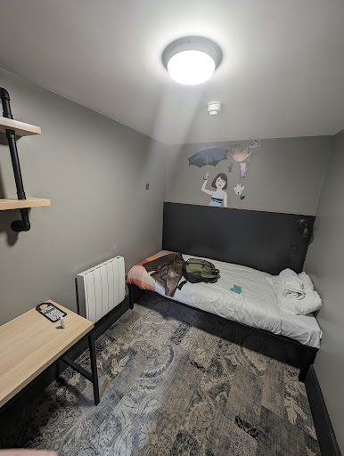 I got just under 4 hours sleep in two sessions. There are literally no signs up telling people to be quiet or considerate which is a bit wild. No staff seemed to check on the hallways at any point.