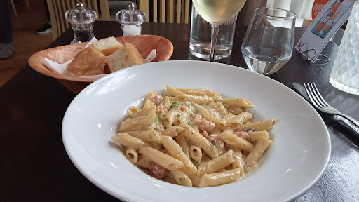 Read moreBecause a friend of mine recommended this restaurant, I booked a table for a Wednesday. I arrived ten minutes before my time. However, this was no cause for concern and, immediately, was guided to my table. I ordered penne with salmon and broccoli, which was on the menu. I must say that I was ready for the penne with salmon and asparagus but this dish, that is in one of the pictures, was not in the menu (the season?). White wine, bread, and tap water completed my order. Service was very quick, not only for me. Other tables were also rapidly served. The amount of pasta was more than enough for me and certainly bigger than other restaurants. The sauce was creamy with small bits of salmon and broccoli. Although the flavors were not completely integrated, the combination was nice. The strong feature of this dish is the texture of the sauce. It coats the pasta adding humidity and texture to it. Simultaneously, the sauce is not liquid, leaving almost no trace of it in the dish. The right texture for a good sauce. Wine (Sauvignon Blanc) was good. Its acid tone matches this dish very well. The bread was a little bit oily, but I understand that the cause is the type of dough instead of some unfortunate decision. In general, I recommend this place. People started to arrive early and it was almost full, which is a good sign given that fact that...