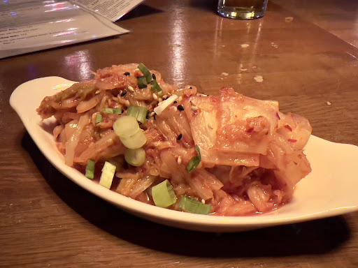 Interesting place to be honest.. seems rather split between a normal pub and a restaurant. I ordered some Kimchi to start whilst I ordered a drink (which I ended up picking up from the bar myself as the waitress forgot about it!) as I love traditional Kimchi (it was nice and as I remember but rather a small amount… I know it’s supposed to be a side but still a little more would of been nice!). Also as a starter I order Pajeon which is like a pancake but it’s slightly spicy and has savoy ingredients. Mine was slightly greasy and wasn’t crispy enough for my liking however it was ok. For my main I had Jeyuk which is spicy pork with sides of Kimchi and rice. This was nice enough but it didn’t wow me to be frank. Regards to the service it seemed to me there wasn’t really much organisation on who was running which tables! Now they were very nice and friendly but there just didn’t seem to be a sense of urgency on keeping an eye on the customers. Both times I ordered a beer from the waiter she then ordered from the barman and my beer just sat on the side of the bar until I got up myself and collected it! Also there was another table which the gentleman got so tired of waiting so he could order his food he got up to ask for someone to come over to the table! The waitress said she’d come in a second then she clearly forgot as she got side tracked with other things until I reminded her by pointing at the table of guests waiting to give an order 😂 Same sort of thing happened when I order my bill.. it took two reminders to get it finally! 3 dishes and 2 pints came to €46 which was pretty expensive but that’s Dublin so I don’t hold this against them. Would I recommend it.. well yes as I’d like to try some of the other dishes however I’d prefer if someone...