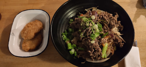 The choice of food is excellent, generally tasty and of good portion size, and will be brought to you in whichever order they feel like. The selection of Dumplings are moist and tasty. I had ordered Katsu chicken, what I was bought was a breaded chicken fillet in what seemed to be a honey soy sauce, whilst definitely not what I'd ordered it was tasty; served with sticky rice, a Dumpling and some kimchi. Presenting a very full dish for a good price. The bar has a great array of drinks from soft drinks to hard liquors
