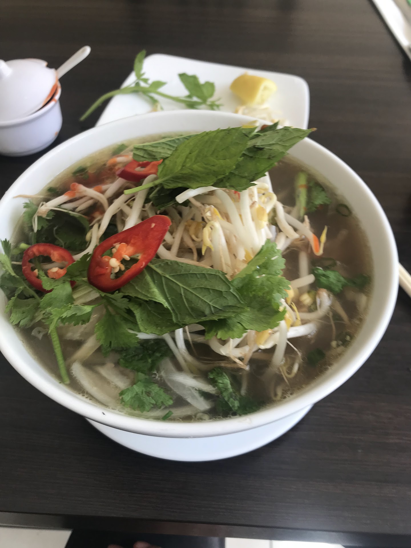 I don't know what happened there but the waitress already looked very pissed and was almost throwing the dishes from the tables to the trays. I mean, yes, we were sitting in between of a 4 seater table as well as a two seater one but that doesn't mean that we were totally invisible as we literally were just in front of them... The Manager was friendly at first but she didn't even smile nor organized properly. As someone who used to work as a waitress as well as a food service Manager, I was taught to give the bill to the guests that are about to go first. You shouldn't be caring so much of the people that are just arriving or you can perhaps just gesture that you'd attend to them as soon as you are done with your guests, whilst you mentally count how many persons they will be and how many tables you will need. This is supposed to be universal. My partner did not like his food so much, perhaps it was the way it was marinated but he is not as fond as me of Pho either, if we have been treated more like they have treated western looking people in front of us, he would probably looked past that and would have gotten something else next time but I doubt we'll ever...