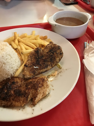 The food is okish but drive me crazy having this kind of packaging! My chips were in a paper bag that of course it got ripped! Chips are the worst i saw in a good time Worthless and soggy Fried cassava horrendous. It’s a amazing place to order a coke because the rest is horrible...