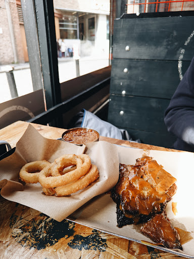Read moreWell, we came here for a late lunch and we were so hungry we took the first restaurant near our hostel. The venue is pretty nice, with wood everywhere and cosy tables. We ordered chickens wings with the homemade bbq sauce and a brisket with the award winning sauce, onions rings and bbq baked beans.