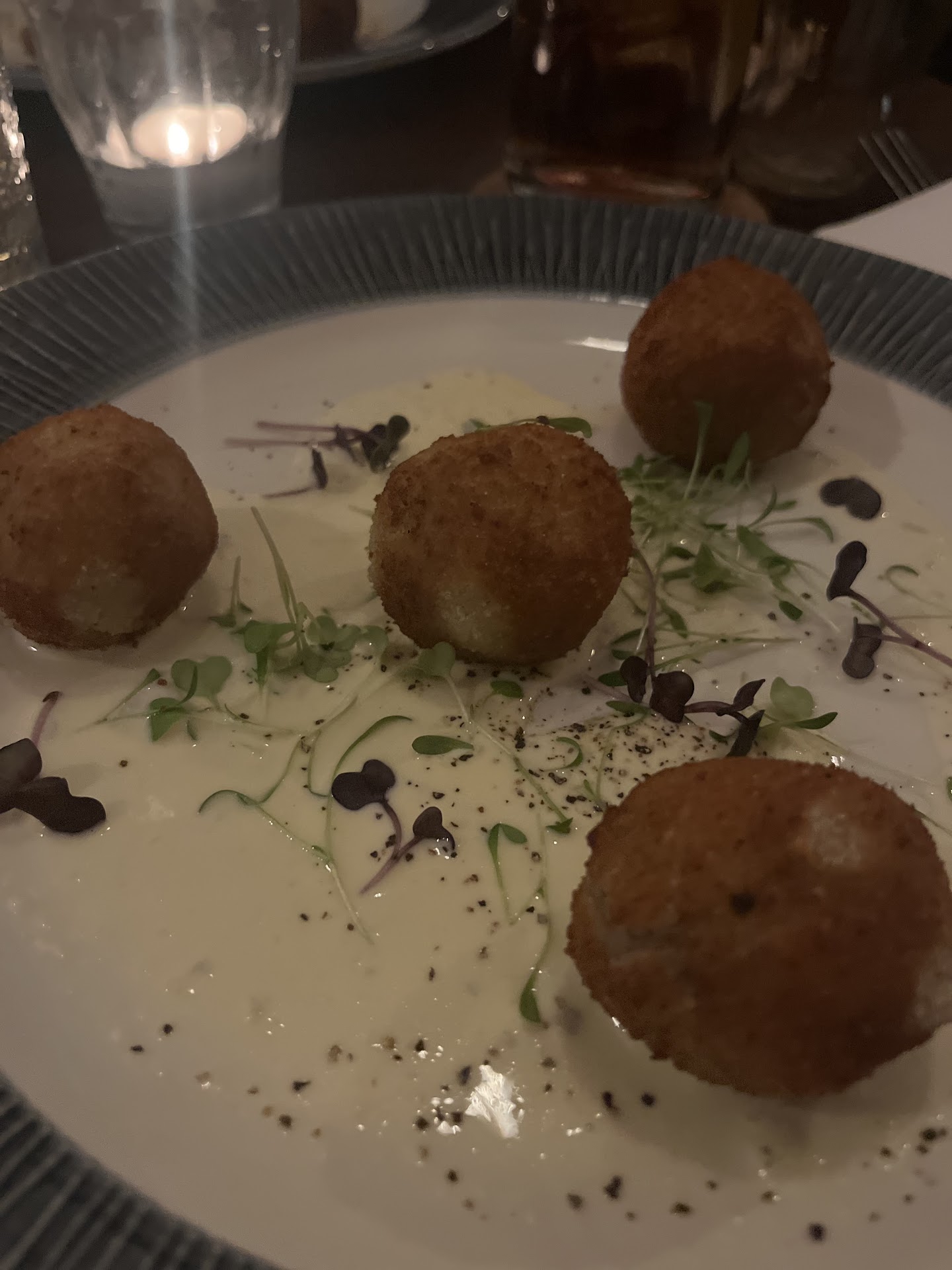 The set up of the speakeasy is so good, the pig to enter and the door appearing behind the bookshelf is brilliant. The menu had mostly Italian dishes and they also had a second vegan menu which looked very good and there was a great variety on the vegan menu. For starters I got: Arancini Ai Funghi Con Salsa Al Gorgonzola, which came to 14€ I must say the presentation was not great, but the taste itself was magical. The sauce was a Parmesan sauce, when tasted alone had a very mature cheesy taste, the fried risotto balls were crispy on the outside and moist filling with a lovely aromatic mushroom flavour, the cheese sauce paired beautifully with the risotto balls. I am craving these again today. The serving size was perfect, there were four balls of risotto, but for 14€ for the dish I think one more ball would make it better value for money and the 5 would look better aesthetically on the big plate it is served on.