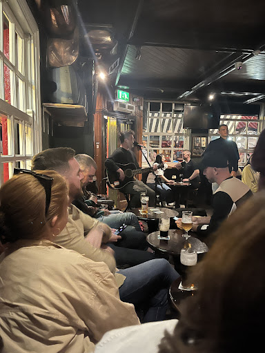 Overcrowded, dirty toilets, everywhere full of empty glasses, no floor staff to be seen. Very drunk individuals knocking drinks off our table. Nobody mopping up. Won't be going back here for a long time. Doorman so surly.Bar staff have the I'm doing you a favour attitude serving you . Didn't hear a please or thankyou. Maybe a shirt or uniform more appropriate for staff. A guy played guitar followed by another. Played all the songs their mates wanted, boring . But the language was so very disgusting.it the norm in a nice pub or from a respectful artist. The 2 singers cursing continually. We left had enuf of their ego, we had friends and tourists with us embarrassing . Not nice or funny. If this is what you call entertainment keep it. Low standards very low. Id say he drank 5 or 6 pints and kept goin on about his hangover. Really!. No respect for your customers and you don't seem to care as you are always busy.Anything goes. A lack of pubs and music the only reason one would go there. Up your standard please and respect your customers or don't open. Employ some floor staff...