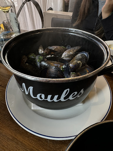 We started off with their bread. It's a freshly baked roll with a slight hint of garlic. It comes fresh out of the oven and they are fluffy and great for sopping up some of the sauces (especially if you are having muscles). To eat, we did a lot of sharing to included the steamed muscles which come in an enormous pot enough to share for a table of four. We had the half dozen oyster mixture and they were very fresh. Peel & eat shrimp and hand cut fries. The peel & eat shrimp is more like a shrimp cocktail. The shrimp were of the size you would get with a shrimp cocktail instead of traditional peel & eat. They weren't completely chilled and didn't seem to be cooked in any flavoring even though they do have Old Bay seasoning. It came with a chipotle mayo for dipping which was good... but would have preferred traditional cocktail sauce with horseradish. Still, they were very delicious. The hand cut fries are epic; they come with aioli for dipping but they were much better with with the chipotle mayo (ask for this to dip the fries). The fries are the perfect size; not too big or too skinny. Perfectly cooked; not mushy or overcooked. And they come in a cup that stays warms and keeps the fries warm for a long time. We ended up ordering a second order of the fries. We also had a second order of the bread to soak up the sauce after we were done with the muscles. And we ended up ordering skewered prawns. They come two to an order and they are grilled to perfection with a very light salty flavoring that is just amazing.