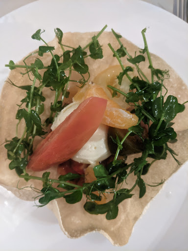 That may sound like a bit of hyperbole but I assure you it is well warranted. The restaurant is cozy and intimate with eclectic pieces of art representing music artists from the 60s-80s all around the walls. Half of the restaurant is the kitchen itself with just a small amount of tables (maybe enough to seat 20-30 people at once). If you are lucky to count yourself among those 20-30 then you are in for a treat! Why? Because the chef is in full control of this menu and will bring you foods that are not only in season but are quite unique. In fact, this menu is so seasonal and unique that it changes weekly! This is the first restaurant I've been to that changes their menu that often. How can they do it? Because the chef owns the restaurant itself. No management that doesn't understand food. The food that comes out of this kitchen is a labor of love and harmony. The menu is designed with the season and ingredients in mind and it really shows.