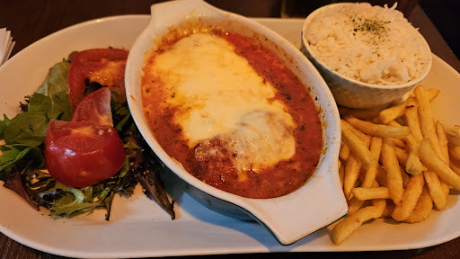 If I were to be critical, there were two issues that came up - though none detracted that bad from our experience, but still, something to consider for the owners. First is that there is no hot plate. So when food is ready, it's merely placed on a platform - no heaters among it. So when it was picked up 1-2 minutes after it was placed, the fries had already gone completely cold. I can see from other reviews that this isn't an uncommon experience. Second, the chicken parmagiana was tasty - no doubt about it, but I would easily say that half a chicken breast was used to create the dish. Many people would say that this is a little cheap on the protein which is, after all, the primary cost of the dish.