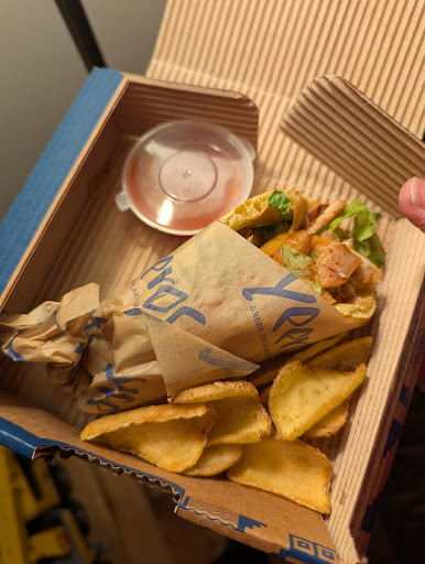 Got A takeaway for myself and my wife. Yeeros used to be so good but the attention to detail is gone. The Greek sis kebab plate that I ordered came with pittas that had been butchered into small wedges making it difficult to use them as perfect vessels for scooping up the kebab, salad and sauce. The photo in the app shows whole fluffy pittas not butchered pittas wedges. The wedges are perfect vessels for sauces not kebabs. In the takeaway box, the chips were resting on top of my salad which means they were soggy. The kebab did taste nice.