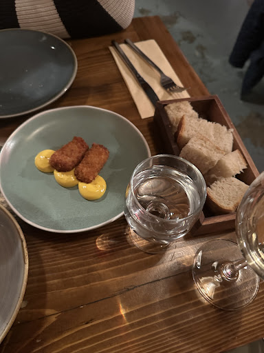 Do not believe the stars rating. I’ve tried to give 2 stars my reviews wasn’t allowed to be posted my husband booked a table (after reading mostly good reviews about this place) our experience (in case it helps, I have some Spanish blood & tapas are a very familiar thing to me, I have family & a home in Spain, so, the opinion I will share will be based on my knowledge of Spanish tapas & the overall experience at the bodega) Arrival: We arrived around 4:50, my husband spoke to a waiter wearing a white shirt & dark Jeans & said that we had a booking for 5PM, the waiter didn’t bother on saying a thing other than point towards the basement and say “downstairs” in a rude & rushed manner, my husband tried to clarify if our seats were downstairs, just to be rudely interrupted by another “downstairs!!” (so, no good evening, no I will show you to your seats, no you are both welcome, overall no manners or a sign of good service) We then went to the basement (where there is a seating area) We were greeted by a Spanish waiter from Galicia (to be fair he did come across as more friendly than the previous rude guy, but hey! After one of the driest & rudest receptions I had in a very long time, any fake smile & exaggerated enthusiasm would do right? :-). We were given a tiny table in the middle of the floor (& the place looked busy) I inquired if it would be possible to take a corner table that was empty as I felt nervous & worried about someone dropping something on me (after a long explanation about how long the restaurant was open & the owners) followed by “I will be looking after you tonight” (which came across as insincere after the lecture) I was told that it wasn’t possible, even though the table was free. After a few minutes there was a change of mind & we were told that we could get the table I asked for on the 1st place, later on I came to the conclusion that we were given that table just because a large group having a hen party dinner were seating to our right. The tapas: we had 6 tapas : Croquetas de jamón: croquettes with Spanish Serrano ham (well, that is what we’ve ordered) what we’ve got: 2 small saggy deep fried croquetas wannabe WITH NO TRACES OF SPANISH SERRANO HAM. Absolutely none yes! I looked for it carefully. A total let down, to make matters worse, it was served over a very strong sauce with English mustard (I mean English mustard sauce?! Maybe if it was served with an alioli sauce I could say ok, there is something Spanish here, or nothing at all just maybe a little bed of salad leaves) Patatas bravas (the worst I ever had, the sauce which was supposed to be a tomato sauce with onions, garlic, pimentón dulce (sweet paprika) and a bit of heat, the sauce we were served was a creamy sauce that resembled a ready made taco sauce (with a pinch of paprika) so, another let down. Duck with plums: the duck was cooked nicely just lacked favour. Pork belly: that was the only tapas that was worth eating. The chicken skewer: dry with an overpowering taste of turmeric. The oxtail Paella: that was a terrible choice here is why: there was zero beef oxtail on it, I do believe that the paella rice was cooked in some oxtail stock that was the only connection that paella had with beef oxtail. It was topped with some tomatoey/ ketchup like dollops & some Yellow dollops. Please add the beef oxtail to that paella! Maybe have pieces of it at the top of the dish. Desserts: we’ve ordered 2: the churros were presented nicely, it tasted okay, the sauce was like ready made/ shop bought. The basque cheesecake: they weren’t joking! It was a cheesecake (it tastes like a block of Brie on the plate, it just tasted like cheese nothing else not even sweet) Atmosphere: the place does resemble a typical low key tapas bar in Spain (a very casual one)maybe, play some Spanish music perhaps it may add to the atmosphere (it would help with the ambiance, as over played English songs gave the place cheap touristy vibes resort kind of place). PS: to add to the bad service a waiter kept on bringing us wrong dishes. I...