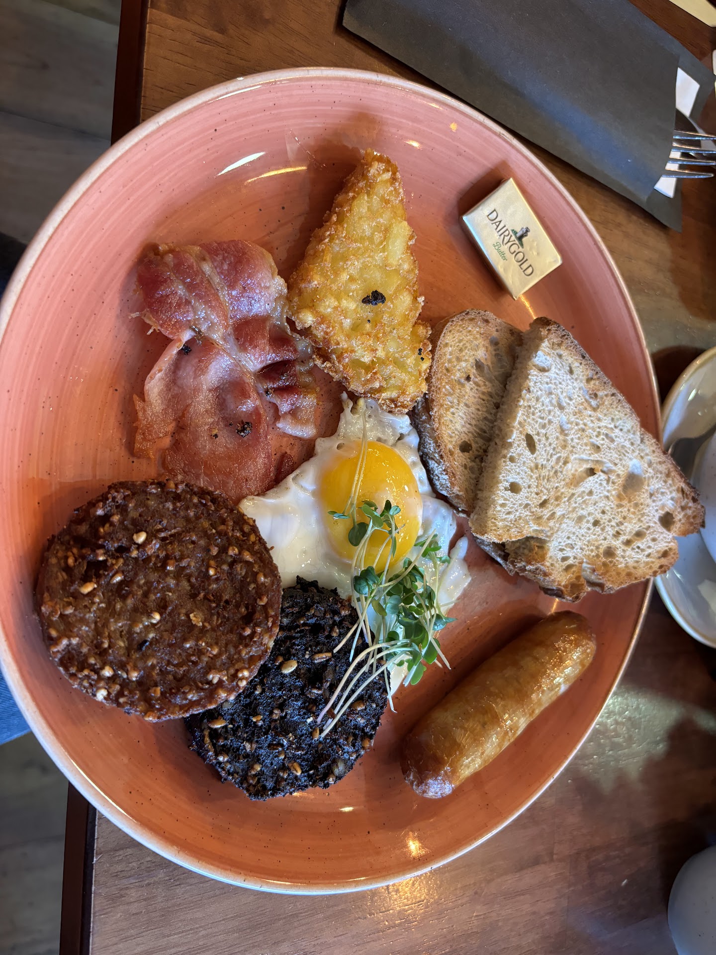 I went for the scrambled eggs with sourdough, and opted for some extra white pudding on the side. I asked if I could have the sourdough separate to the eggs as I hate soggy toast, and was assured that the sourdough toast would always be done as requested. After a lovely conversation with the gentleman I was served my coffee and awaited my breakfast.
