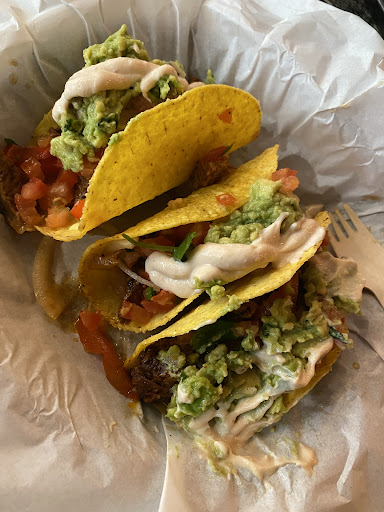 Read moreReally cool place, sort of Subway style where you work your way along and select your ingredients. My boyfriend got a burrito (no photo) and I got hard shell tacos. Lots of vegan fillings available, different flavours of rice, at least 3 main “protein” options including the plant-based pork (highly recommend!) and the vegan 3 bean chilli filling which my boyfriend had and said was great, definitely something for everyone. They even had vegan sour cream!! Really good portions and flavours. 3 levels of spice on offer for the salsas (mild, medium, spicy) - I went with mild and my boyfriend had spicy - mine had a kick that I could just about handle, nothing too crazy but my boyfriend’s was prettyyy spicy! It’s more like a fast food vibe, than a dine in experience. Also serve beers and soft drinks. There seems to be a toilet but it’s number coded, so I’m not sure if it’s staff only or they just need to let you in. We didn’t want to wait for staff to use it so we just left and went to the nearest pub, this was a bit of a let down as it was...