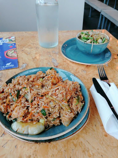 Camille used to be so great. I don't know what has happened. The staff are still great and the venue is nice, with good atmosphere, but the food is just so inconsistent and substandard now. I recently got a chicken starter and it might have been the worst chicken I have ever had. It was like it had been cured over several years. It was mummified meat. More like chickens feet than chicken tender. Could not even bite through it. It was like tough plastic string. It was as if they picked it out of the bin and the side salad was like it had been cut out of cardboard. The tiny tub of Sriracha sauce was enough for one chip. The monkfish special was all rice and I counted three pieces of monkfish. There wasn't even the option of Thindi, which for me, is now the better option. There are still nice options like the cauliflower and the curries are nice, but it's mostly rice, sauce and veg with not enough meat. I feel like Camille has got lazy with the food- taken their eye off the ball. Shame, because they were on to a really good thing. This is not my first bad experience, I was a loyal customer who has left good reviews also, but the last two years have seen a...