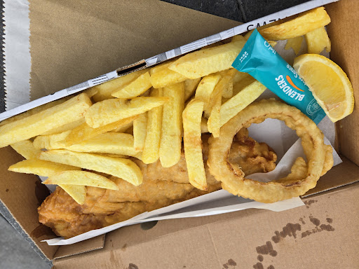 Read moreThe battered cod fillet was really really good and I'm not a huge fan of chips in general with exceptions from time to time, these weren't one of those exceptions. Got a fish, chip and coleslaw and it was nice but it was a slight pain not having somewhere to eat it, jade to buy a coffee in a Starbucks across the way. Not sure if they had some vinegar to take away but definitely could've done with more than the sprinkle on top and yknow it wouldn't go astray to throw a bit of tartar sauce in with a fish and chip. Overall, good food though and would recommend. Maybe just have an idea of where you're gonna eat and grab some...