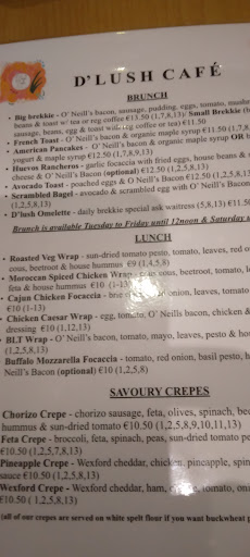 We just had the most fantastic brunch/lunch at the D’Lush Cafe. What a hidden gem! I had the chicken caesar wrap, perfectly prepared with an egg, fresh greens, and rashers, and mixed with a homemade caesar dressing. The wrap was toasted perfectly. I will be savoring that taste for a very long time! Patrick had the avocado toast and smoked salmon on freshly made sourdough bread. Absolutely delicious!! He had seen the pictures on Facebook and had wanted to try it for a very long time. Amy is the perfect hostess and Rocky an awesome chef! If any of my fellow Americans are ever in Wexford, make sure you pay a visit to this hidden gem. You will be so happy you did! The atmosphere is warm and welcoming, the service impeccable, and the food a culinary delight! Here’s a tip; if you want a table, you better book...