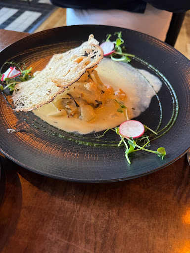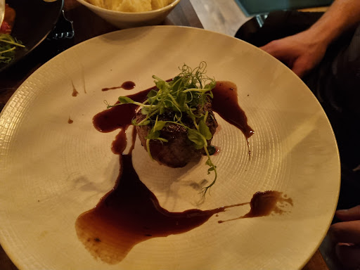 My confit pork appetizer was turned into a main dish (so, too big) and it didn’t have any split peas or black garlic puree -- the things that make it tasty. So imagine having two lumps of confit pork cheek with au jus and a bit of pork crackling on top. It was such a disappointment.