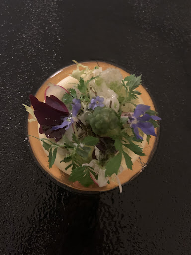 🪑 Atmosphere & Service The room’s layout is disorienting. All guests face inward toward a cluster of center tables, creating an odd “spotlight” effect on whoever is seated there (we were). No background music means the space gets louder as drinks flow — not ideal for a fine dining setting. Staff were kind but seemed undertrained and inconsistent. Despite the 15-minute staggered seating model, pacing was all over the place. Guests seated after us were served ahead of us and left nearly an hour earlier. For a venue at this level, service should feel seamless — it did not.