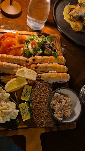 The food was fantastic—my partner had the pan-fried seabass fillet (gluten-free, with baby potatoes, mushrooms, and pesto beurre blanc), and I had the cold seafood platter, both fresh and delicious. The desserts and coffee were outstanding, and the prices were fair for the quality.