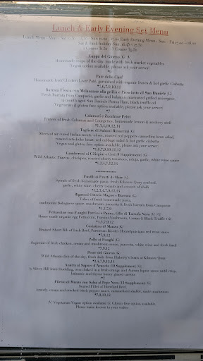 Visited yesterday to celebrate a friends 60th birthday. There is an very good value lunch menu at 2 Course €28 ~ 3 Course €35.50. Ordered our starters and drinks and caught up on the gossip. Our starters arrived and mine was calamari fritters, which were more like calamari shavings, most unusual texture. Unfortunately, they arrived at the table cold, so they had to go back to the kitchen. By the time they were returned, my three friends had just about finished theirs, so things were running behind. Mains and desserts were very good and the Safari wine was glorious. Now when I booked, I mentioned it was a birthday. The person taking the reservation asked for my friends name and said they would put a candle on her dessert. As it happened, she did not order dessert but she was given a blob of ice cream with a candle in it and two handsome waiters sang Happy Birthday. All very sweet. I paid the €300 bill and we left.