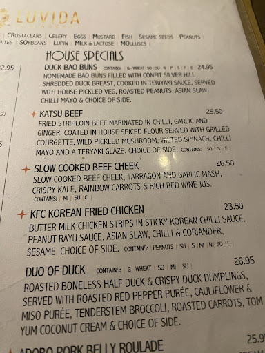 My husband, I and children dined here for the first time on a bank holiday Monday although we have previously eaten at their sister restaurant People's in Cavan town. My husband and I both had the 2 course early bird at €29. Our children (aged 3 & 5) picked the burger and chips to share from the children's menu at €9.50 which fed them both generously. I really liked the healthy side options on the children's menu and was impressed to see Sirloin steak as an option here as well. Kudos to you regarding this. For starters, I chose the Ginger beer battered prawns with a €3 supplement. Very good and flavoursome. My husband couldn't pass the chicken satay which he loved: it was melt in the mouth and praised it highly. He also gifted me a taste: it lived up to the high praise!! For mains, my husband went for the Luvida's Thai chicken curry with rice (chips extra at 1.50). He reported that the heat builds as you progress with the curry. The sweat was running off him by the end. I decided on the Luvida's Southern Fried Chicken Burger with all the trimmings and extras and side of sweet potato fries. I finished the burger but couldn't manage the sweet potato fries. Without me asking, the waitress kindly offered the fries to takeaway which we opted for. We were too full for dessert but I would have gone for the black forest cheesecake had I had space. For drinks between us, we had water for the table, some Dilute at €1, a Bramble cocktail at €11.95, Tanqueray and tonic for €8.90 and a non alcoholic Erdinger at €6.25. We were really impressed with the food and service here and how accommodating they were to our children. We will return and would highly recommend. Keep doing what...