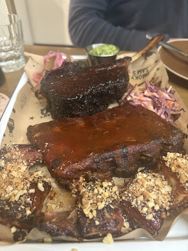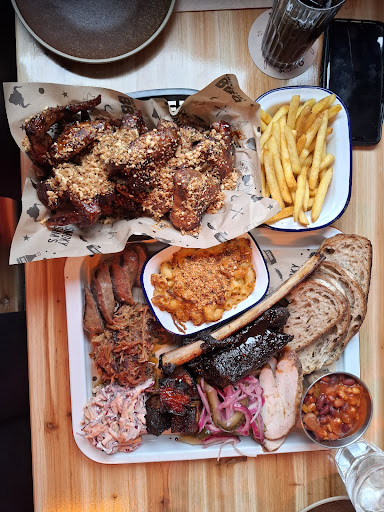 We were served by 3 different people while we were there and although they were nice, the service seemed so unorganised. We never received one of our sides. We had to ask for plates to eat off. The "smoked hasselback potatoes" weren't at all smokey and were undercooked. My partner found multiple feathers still in his chicken wings. The brisket was really overcooked and my father in law could barely cut into it let alone eat it.