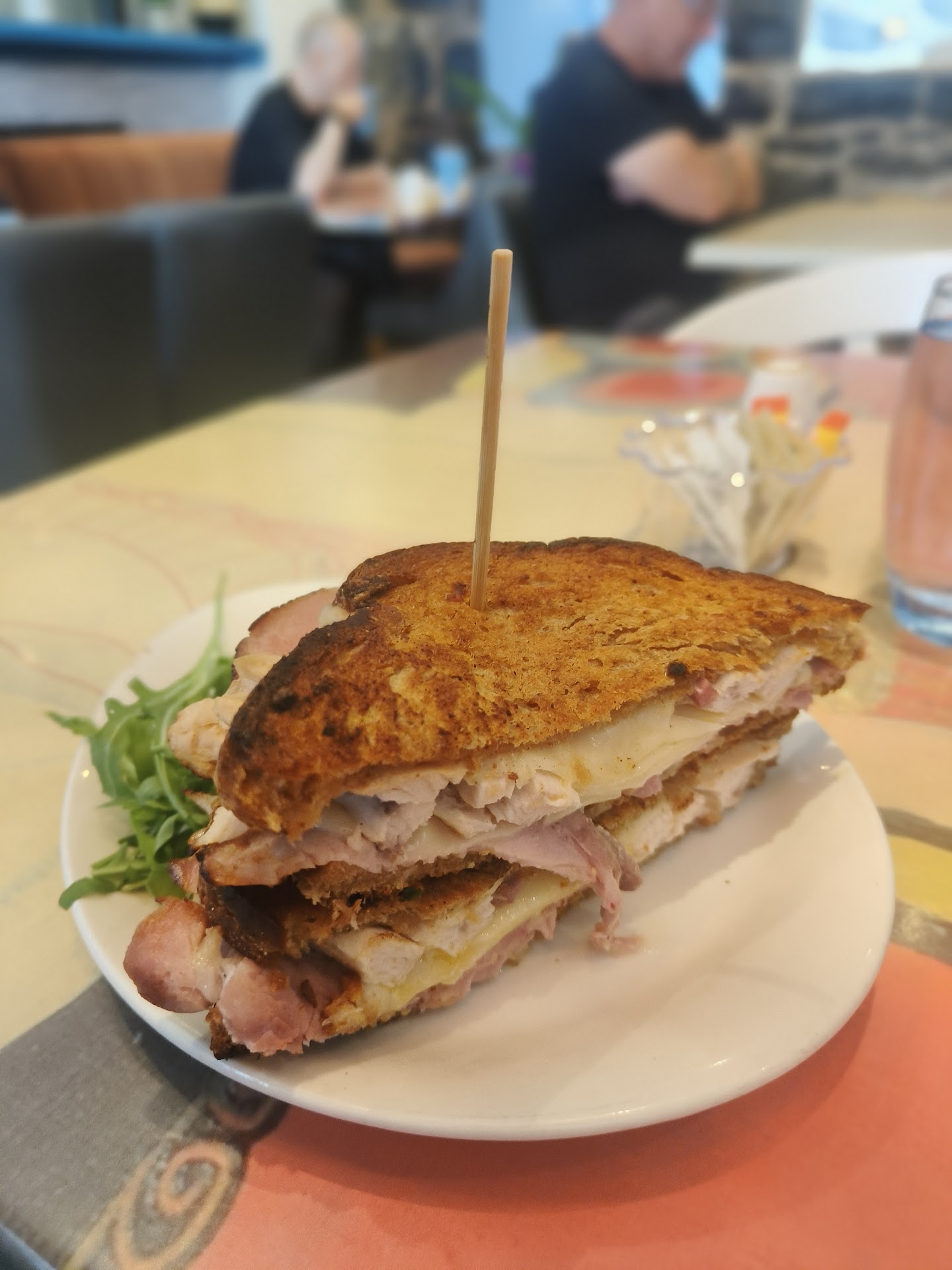 I had the pleasantly buttery Monte Cristo sandwich with slaw/salad and loved it. Also appreciate that they do a nice matcha latte (unsweetened by default, as it should already be to my mind!). Everything was fresh and tasty.