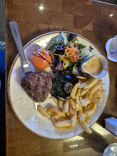 Read moreThe bar is great and so are the staff. Finished our 3 day break off with a t-bone steak meal. I am old and I can honestly say this is the worst steak I have had in my life. I ordered 2 t-bones one for my wife and one for me both medium one with fries one with the beans and sauce. Started eating it and got a big hair in my mouth, I would not have bothered but my wife complained. A guy came I said it 's fine but he insisted on changing the meal. By the time the replacement came my wife had finished her meal , she can eat fat I can put up with a bit.The cut of meat was horrible it was full of fat, I expect a bit on the sirloin side but even the fillet was fatty, stringy fat everywhere and that was a first for me. I paid £80 for the meal and 2 pints, I paid but complained to the manager who swapped my meal and he said he came to me and asked if every thing was fine 10 minutes after he had swapped the meal , it was more like 30 seconds and said that I agreed it was fine, I did at around 30 seconds. My wife's side dish of chips were soggy, and the beans I ordered were no better than tinned beans. The most expensive meal I have ever paid for and...