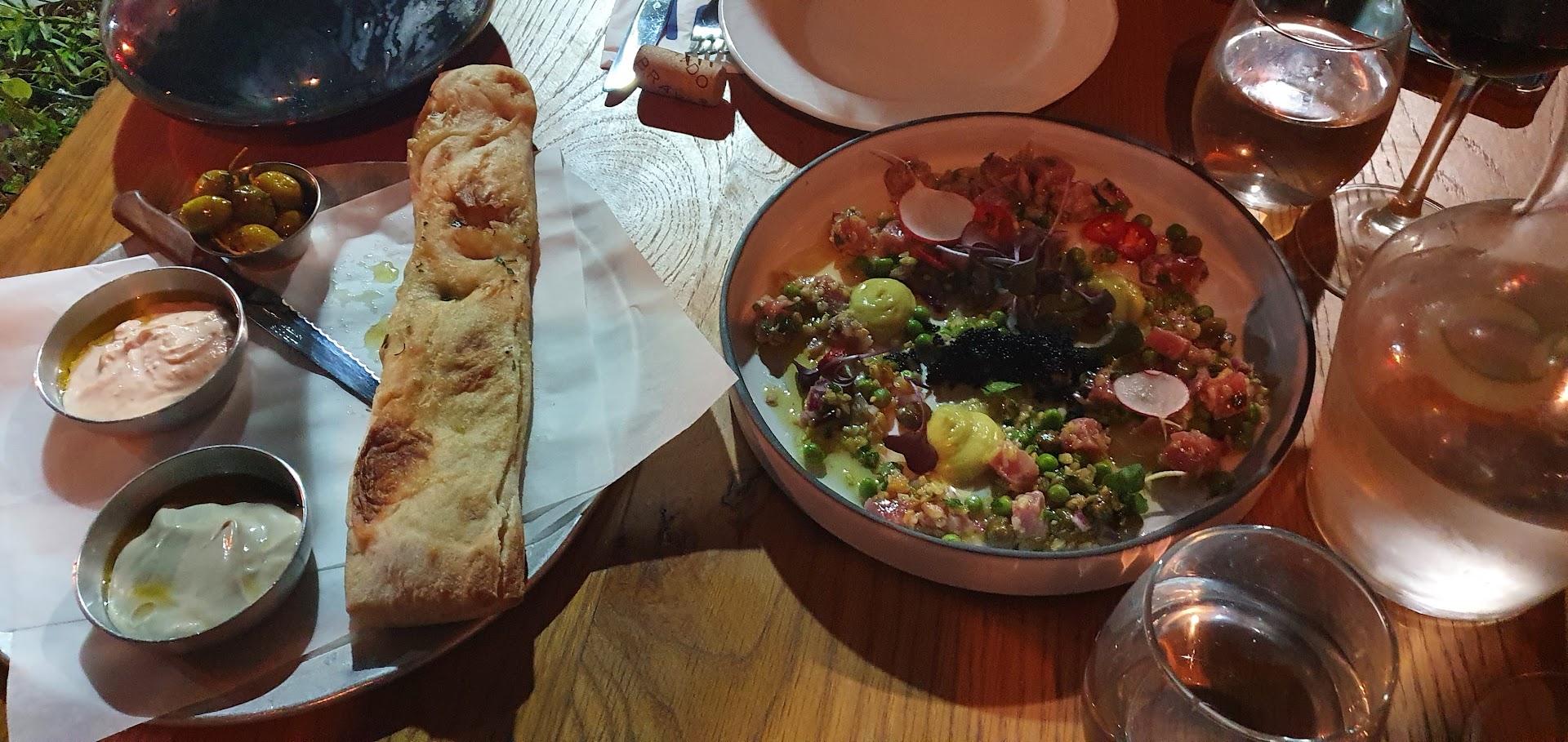 Read moreWe were 8 ppl, some of the food we ordered was absolutely perfect but some of it was not suitable for the level that this place aspire to be. They gave us the main dishes with huge gap when the firs one got his dish after 10 minutes and the last one after 40 minutes of not more. The balagan in the shuk dish is wonderful and so are all the fish dishes and Kiko San Jack. The deserts are also amazing but the seafood pan is too small for a main course and comes without any bread, rice pure etc. And it is disappointing because you get an OK dish but it's small so I would at least expect for a piece of bread for the sauce. The asparagus starter is pointless to order if you are more than two people.. It's literally has 4 asparaguses. I will come back again in few months to see if they improve some of the dishes because you could see a very good hand of a chef there and they were very attentive and sent us drinks when dishes...