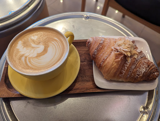 Read moreThe place is highly recommended! I took an almond croissant along with a cup of cappuccino. The croissant was absolutely amazing, one of the best I tried for my opinion, airy dough, perfectly made with the right amount of almonds on top. The coffee was accurate and was very good also. The place's atmosphere is cool but it wasn't comfy enough to stay sitting on these chairs and tables for more than a few minutes. Overall, a great place to come by and get a very good coffee with some high quality pastries. Good...