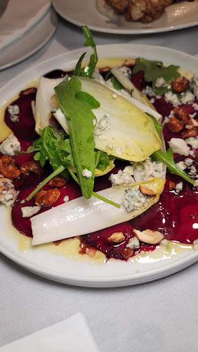 Where do I begin? This enjoyable experience started with a salad that is not on the menu but was prepared by request with no struggle. That in and of itself is delightful. Yuval with the pink hair was most accommodating and I was refreshed to hear: “We will do what you want. Shall we shave cheese on to your salad?” After I described the endive, tomato, red onion, arugula, cucumber and shaved cheese salad I wanted, hot, fresh and well salted freshly baked focaccia bread was brought to the table accompanied by an olive oil, fresh tomato dipping sauce that was superb. My palate was doing somersaults. I only accompanied this with Pellegrino water with lime and lemon squeezed into it. I could have ended the evening there and been very happy! BUT I had ordered the amazing mushroom risotto with fresh basil and shaved Parmesan. Absolute satisfaction. The staff is alert, almost cognitive: they know what you want and are alert reading your eyes ready to usher it to you. I would say it was a successful endeavor. Yuval with the pink...