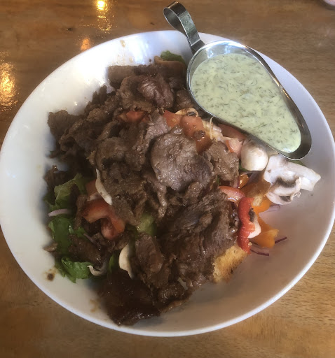 Bad experience. First time I was there (1 year or more) was a much better impression. Beside the fact that the staff was very hostile upon arrival they told us, that the restaurant is full and we have to wait 1 hour. We accepted and walked around Ben Yehuda. We passed by a couple of times to double check but still we had to wait, even though the restaurant was almost empty as upon arrival. Trying to ignore the suspicion we waited as agreed. Finally we could enter. The table was not "ready"! They tried to squeeze us 13 people with 3 kids and one baby in a stroller into a table for 10! Tables were not aligned and the edges were bothering a lol. When I spoke to the apparently "manager" (red painted hairs) of the restaurant she was just asking me what I wanted to do in a very unpleasant way as if there are no other solutions and if I was just bothering her with my request of simply having a more comfortable table arrangement. I by myself took the initiative and started rearranging the tables according the needed space. The manager left in a very disappointing way the issue to a waitress who was definitely much more polite and helpful. The food was good even though some asked for "well done" steak, which has been served twice medium-rare. Entering the bathrooms with the stunk of a toilet at the central bus station didn't help to improve the all-around impression of a careless management, beside the missing toilet paper, the wet and sticky floor as well as the missing towels or the disconnected hand dryer. Before leaving we wanted to order a dessert. The desire had been instantly killed by a cockroach big like a toe, crawling along the corners near our tables. This led most of the people to just order a coffee!