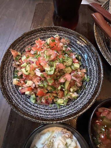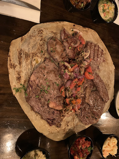 We split a filet and lamb ribs for entrees and had the Arabian salad for an appetizer. The entrees were served with a healthy portion of hummus, pita and sides.