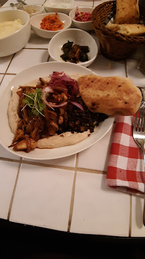 Read moreWe unfortunately went on a Tuesday evening when apparently they have a live singer playing a bouzouki & singing, obviously, Greek music. I don't love it, but I wouldn't have minded so much if it weren't so freaking loud that you could hear it all the way in the Mamilla apartments across the street.... I love music, but when you want fine dining, it means being able to hear conversation at your own table! Secondly, we waited a good 10 to 15 minutes for a table even though we had a reservation. Food : not enough salad options in my opinion, at all. Food is good- though of the numerous mezes put out with the main I ordered, very few were truly good and not enough were worthy of being accompanied by the good frena bread... My main dish was very good (grilled fish) but was presented /plated looking very lonely on a bare plate with only 2 mini grilled peppers. Service was very attentive & pleasant. Desserts were delicious & generous. Overpriced, but since it's a hotel restaurant (Mamilla Hotel) I suppose they feel justified. I don't feel the...