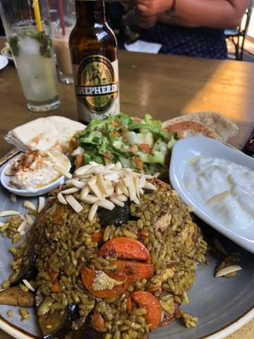 Read moreFound this little gem online when we first arrived at our hotel and it was within walking distance. Unfortunately when we got there it was closed even though it was the middle of the day. We found out from our receptionist at the hotel that a lot of restaurants were closed locally at this time due to Eid. We Facebook messaged the owner and he speedily replied and confirmed this and told us he would be open tomorrow. And boy was it worth the wait! Mo, the owner suggested the daily specials so we went with one of them and a chicken dish to share from the menu. The food was served promptly and both dishes were delicious, we couldn't decide which was better! Big portions too and we had 2 local beers that Mo suggested to wash them down. The restaurant was very cost, chilled and the walls were covered in history and books you could swap or take! Mo answered every one of our questions (we had soooo many) about the culture, country and places to go. He was great company, we could have stayed there all evening! I would highly recommend this restaurant for not only the food and drink but a history lesson and great...