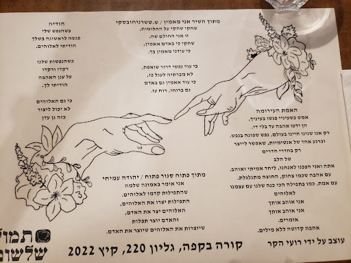 Read moreDisclaimer: we came to enjoy some good cheesecake, but sadly that was sold out. However we decided to stay, and we were not dissapointed! Tmol shilshom is a Great place! It doesn't get much more Israeli then this bookshop restaurant. Everything here has been thought about. The menus are little famous Israeli children's books, the placemets have shirt stories written on them, and the food is classical Israeli, with dishes like shakshuka, Israeli breakfast and more. However, their hot drinks are the most tasty looking and creative I have ever encountered. We had a pizza Margaretha and a mozzarella fuccacia, which were very tasty. As a dessert we had the caramel crack pie and the lemon pie, which was the dessert of the day. We didn't enjoy the "special" hot drinks, since we were already super full, but we will definitely come back for them! The waitresses were super friendly, the place has a very chilled atmosphere, nice soft background music. A great place to enjoy good food and a nice conversation. We will for sure come back, and next time there better be...