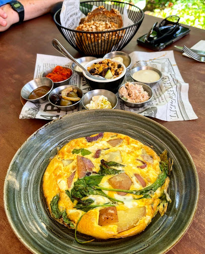 I came here by chance. The menu is not what you would expect, even regular well known items have been given a new twist. Some sound odd as combinations but I suppose it's up to the individual. Service was excellent. My waitress was Niv Zilbershtein. She was friendly and quick. I chose the Single Glilit. An odd combination of bread with labane, a poached egg, chick peas, tomatoes and something else I couldn't name. The side dish[es] were a green salad (it could have been quinoa but I chose green), a cream sauce, feta and olives in small plates. It was surprisingly good. Cooked perfectly. The salad was fresh and tasty. The combination works. The total was 69 NIS. The place fills up very quickly so expect to have to wait a bit. It also sems to be a preferred place for religious folk, so it's obviously kosher. I recommend it. Take into consideration that it's...