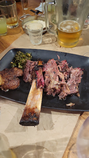 Read moreI'm not sure why so many people are talking of this place as a show. It is an interesting restaurant where the meat cooked on the fire is the star of the show. The concept is 7 meat courses plus desert. Beer, wine, and water are included. All this is priced 300 Nis, which is actually quite reasonable considering what you get. You also enjoy a short explanation for each course and sometimes some customers are invited to the open kitchen to help. This, I guess, is the show part. Now the food. It changed every night according to the mood of the pitmaster and is not known in advance to the guest. I won't go through every course, but it goes from araes to Duck, up to entrecote. The meat is always the centre of attention, and there is some small side dish for every course. Every dish was good and well thought but my favourite on that day was the entrecote and the smoke assado. The dessert, a chocolate cake with caramel and whipped cream, was ok, but at that point, you are too full to enjoy anything. It's a great meal worth trying at least ones if you are a meat lover. But it is not recommended for people who...