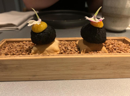 The dish presentations were rushed and lacking finesse. On two occasions, the explanations were so hurried that we couldn’t fully appreciate the experience. For one dish, there was a dashi pour-over, but if you wanted to photograph it beforehand, you’d have to be incredibly quick. In another, the server/bartender explained that if we wanted to take a picture, we needed to do so immediately because she had to mix the dish, but she didn’t wait long enough for us to get our phones out before she started mixing.